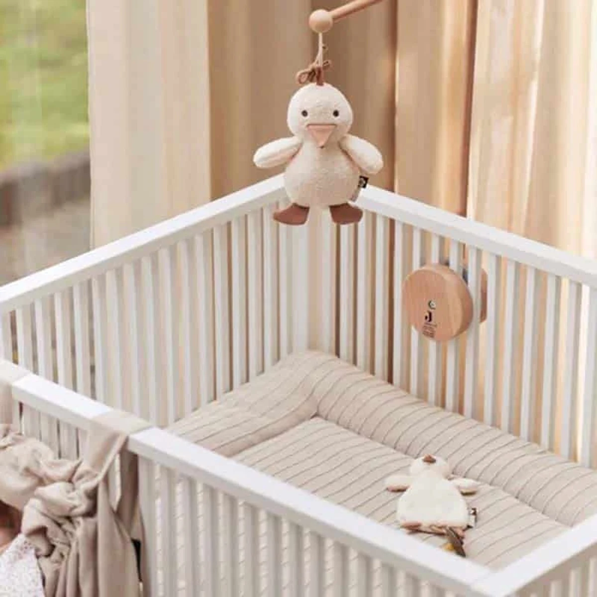 Hoe leuk is deze wagenhanger met schattig eendje! Naast dat dit ontzettend leuk staat, zal dit ook de motoriek van jouw kleintje stimuleren en de zintuigen prikkelen. Dit schattige eendje kun je met de plastic ring gemakkelijk aan de maxi cosi of wandel wagen bevestigen. De binnenkant bevat een belletje. Ook zit er een extra kleurrijke tag aan en twee korte koortjes. Het snaveltje en de voetjes van het eendje hebben een knisper geluidje. Daarnaast zit er op de buik van het eendje een baby spiegel. Dit lieve eendje zal zorgen voor vermaak van jouw kleintje! De wagenhanger is 18 cm. Ook verkrijgbaar in de vorm van een bloemetje.