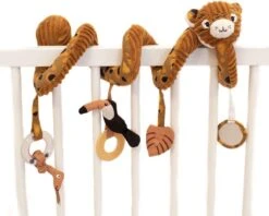 Deze activiteiten spiraal is een leuk en leerzaam speeltje dat je overal gemakkelijk kunt ophangen! Je baby zal veel plezier beleven tijdens het wakker worden dankzij de vele activiteiten: het geluid van ritselend papier, een rammelaar, een kleine spiegel, knopen en een bijtring. Een leuk speeltje voor je baby om te ontdekken.